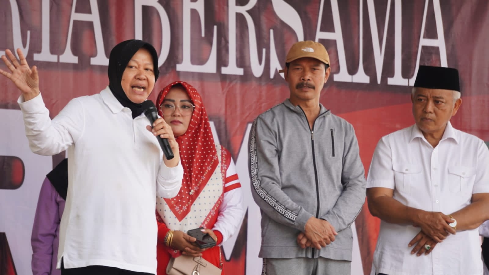 Surabaya, AIANews.id – Calon Gubernur (Cagub) Jawa Timur nomor urut 3, Tri Rismaharini, disambut antusias oleh ratusan warga saat berkunjung ke Lapangan Lumba-Lumba di Kabupaten Malang, Jumat 1 November 2024.