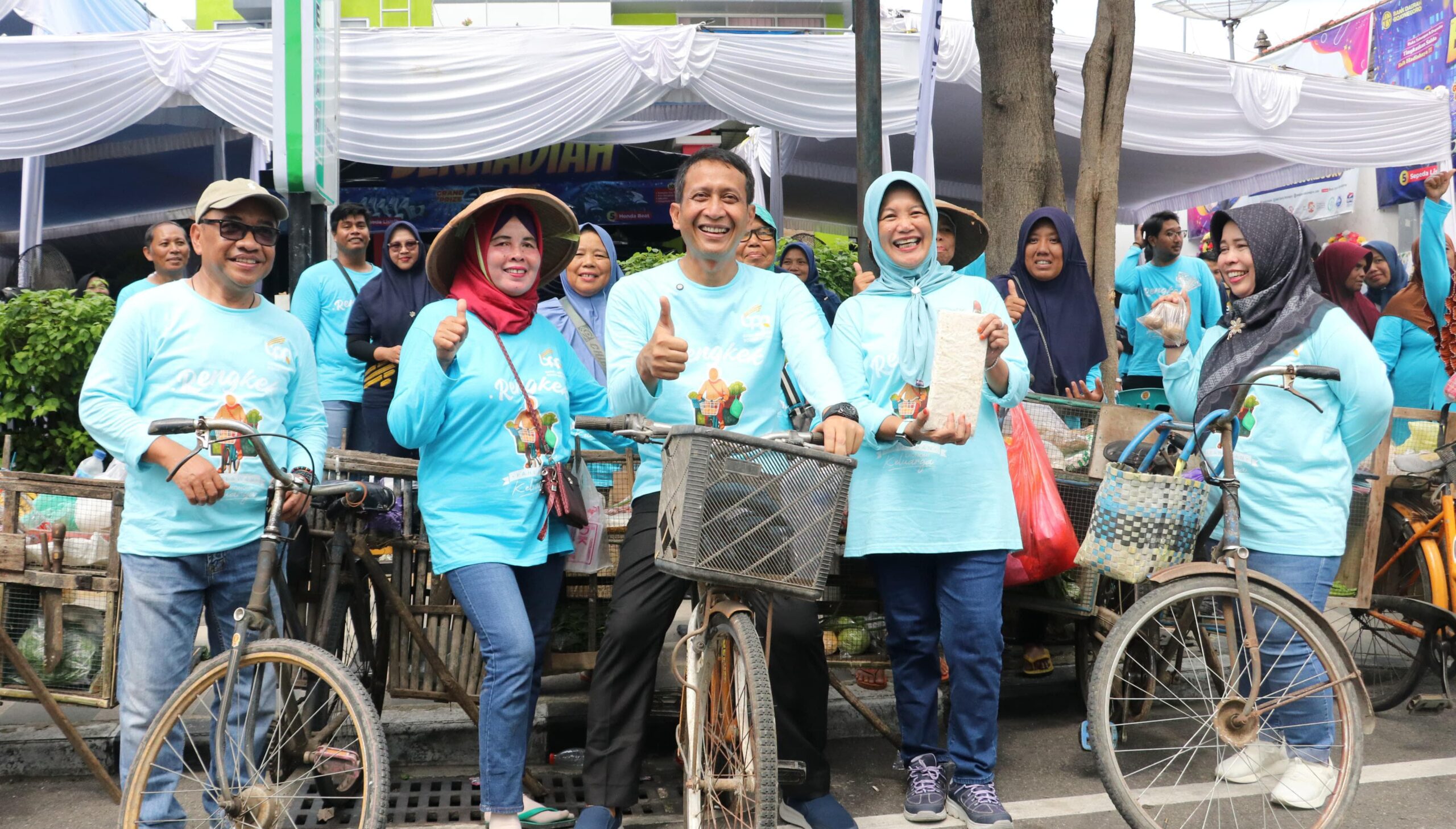 Tampak meriah saat jajaran PD BPR Bank Daerah Bojonegoro, Asisten daerah, kepala OPD terkait dan tamu undangan ikut memilih dan membeli sayur mayur kepada 125 penjual Rengkek yang dihadirkan.