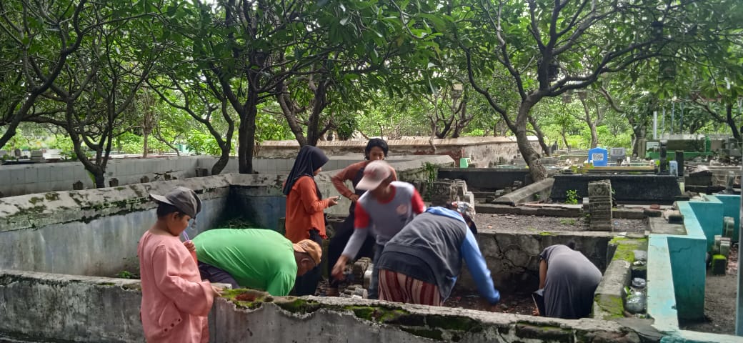 Tidak hanya individu, bahkan ada keluarga yang turut serta melakukan kegiatan ini. Beberapa keluarga datang bersama-sama untuk membersihkan makam. Ada ayah, ibu, dan anak-anak yang bekerja sama membersihkan area makam.
