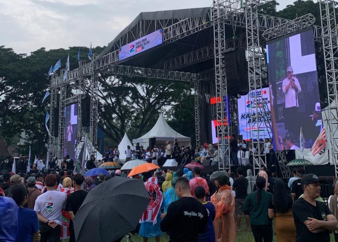 Meskipun hujan deras mengguyur sejak siang, antusiasme pendukung tidak surut. Sejumlah warga tetap memadati lokasi untuk memberikan dukungan kepada pasangan yang dinilai memiliki visi perubahan ini.
