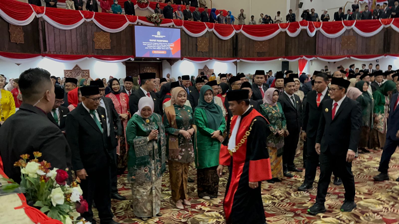 Dalam kesempatan tersebut, Ketua DPRD Jatim periode 2018-2024, Kusnadi, secara simbolis menyerahkan kepemimpinan kepada pimpinan sementara yang akan memimpin proses lanjutan hingga terbentuknya pimpinan definitif.