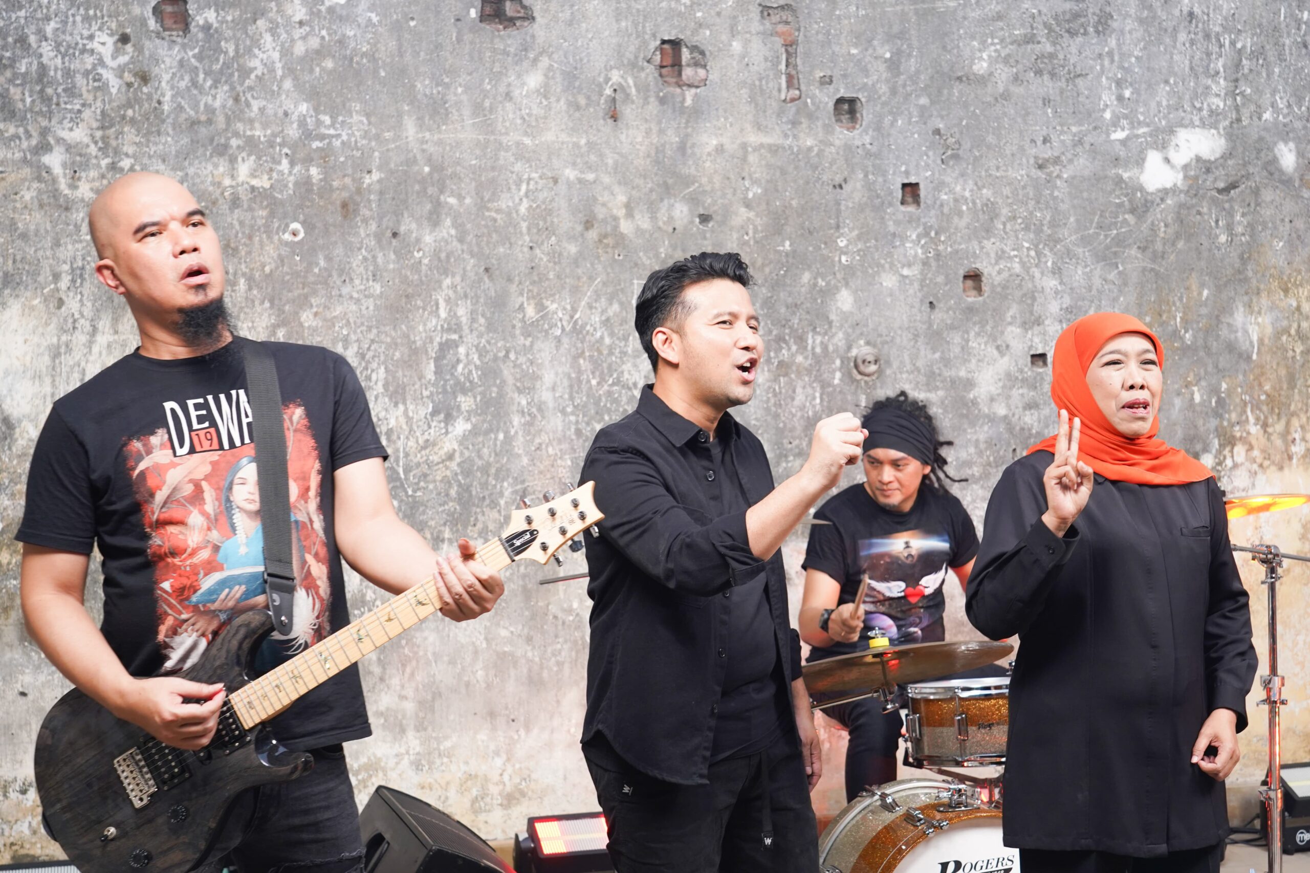 Khofifah-Emil Kolab Bareng Dewa 19 Nyanyikan ‘Hidup Adalah Perjuangan