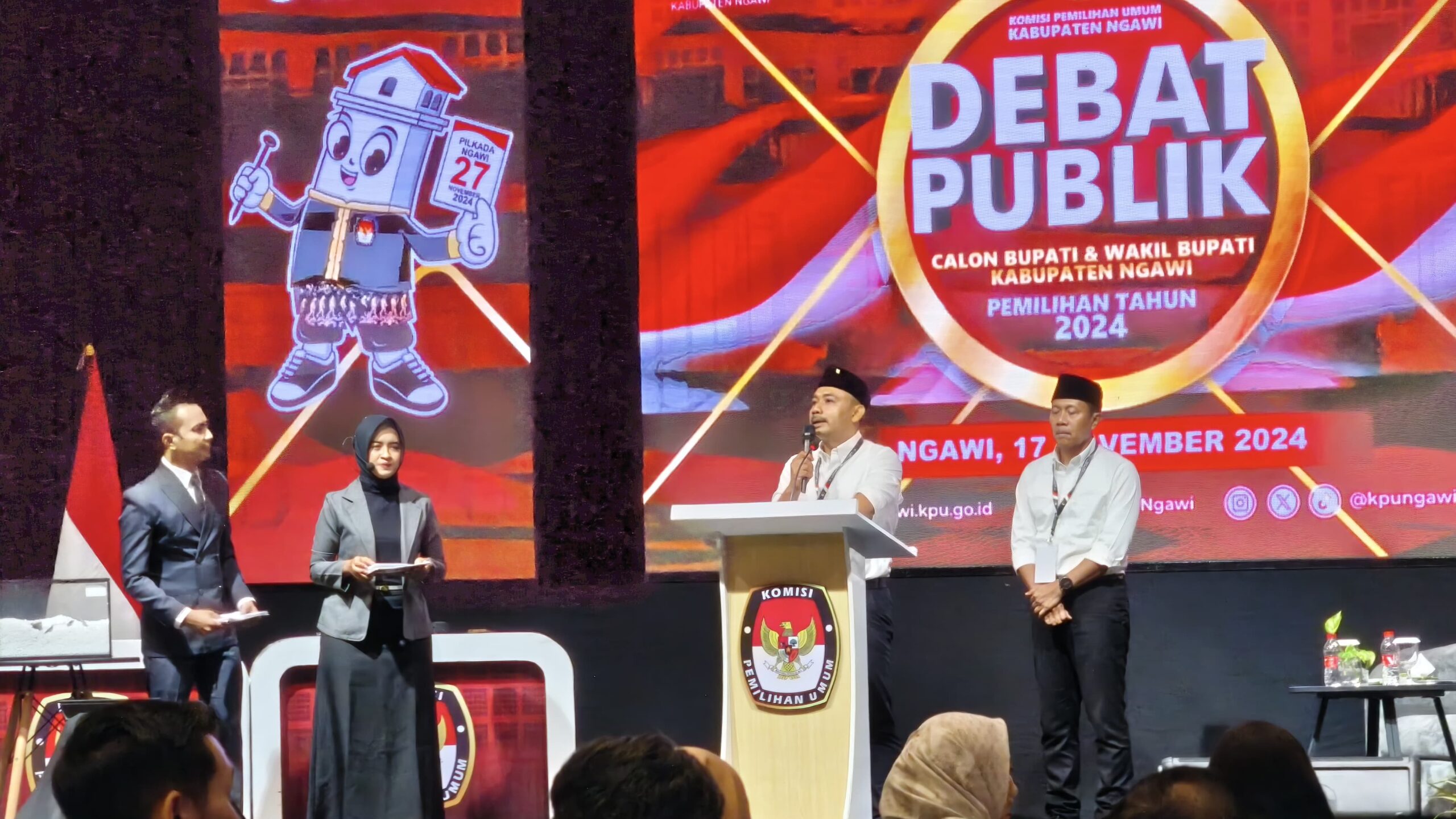 Sementara itu, Ketua KPU Ngawi Samsu Mustakim mengatakan, melalui debat terbuka merupakan salah satu metode kampanye pasangan calon bupati dan wakil bupati Ngawi dalam menyampaikan visi misi serta program kerja untuk memimpin Kabupaten Ngawi 5 tahun kedepan secara luas kepada masyarakat kabupaten Ngawi.