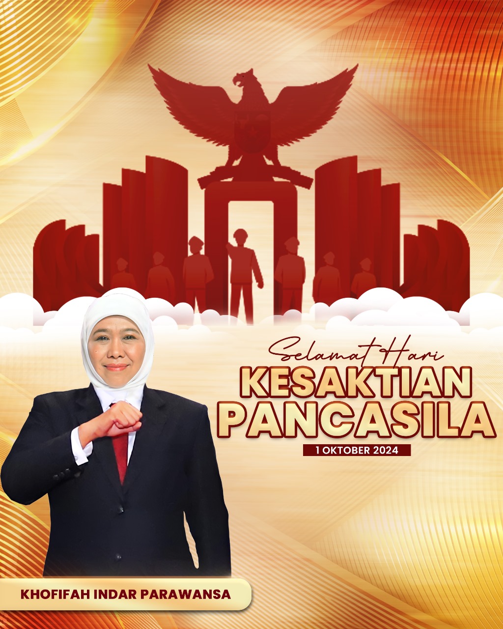Lebih lanjut, Khofifah menekankan, Hari Kesaktian Pancasila menjadi gambaran kuat bahwa nilai-nilai luhur Pancasila selalu berhasil membawa Bangsa Indonesia keluar dari segala tantangan dan kesulitan. Bahwa Pancasila tidak hanya sebagai falsafah dan ideologi bangsa, tapi juga menjadi kekuatan dalam kehidupan kita sehari-hari.