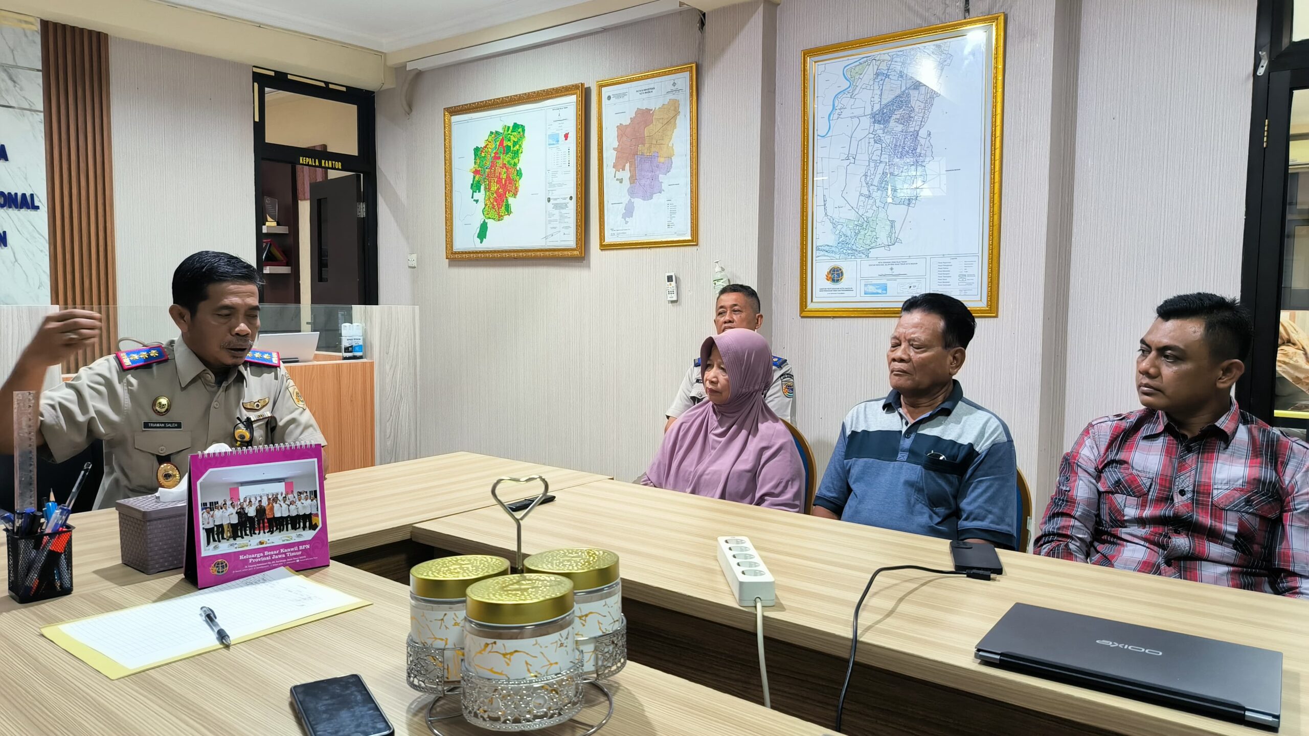 MADIUN, AIANews.id – Perselisihan kepemilikan lahan yang terjadi di wilayah Kota Madiun akhirnya selesai. Pada Selasa 11 Maret 2025, Kantor Pertanahan (Kantah) ATR/BPN Kota Madiun mengundang Sariman dan Darning Supeni selaku pemilik lahan untuk meluruskan persoalan.
