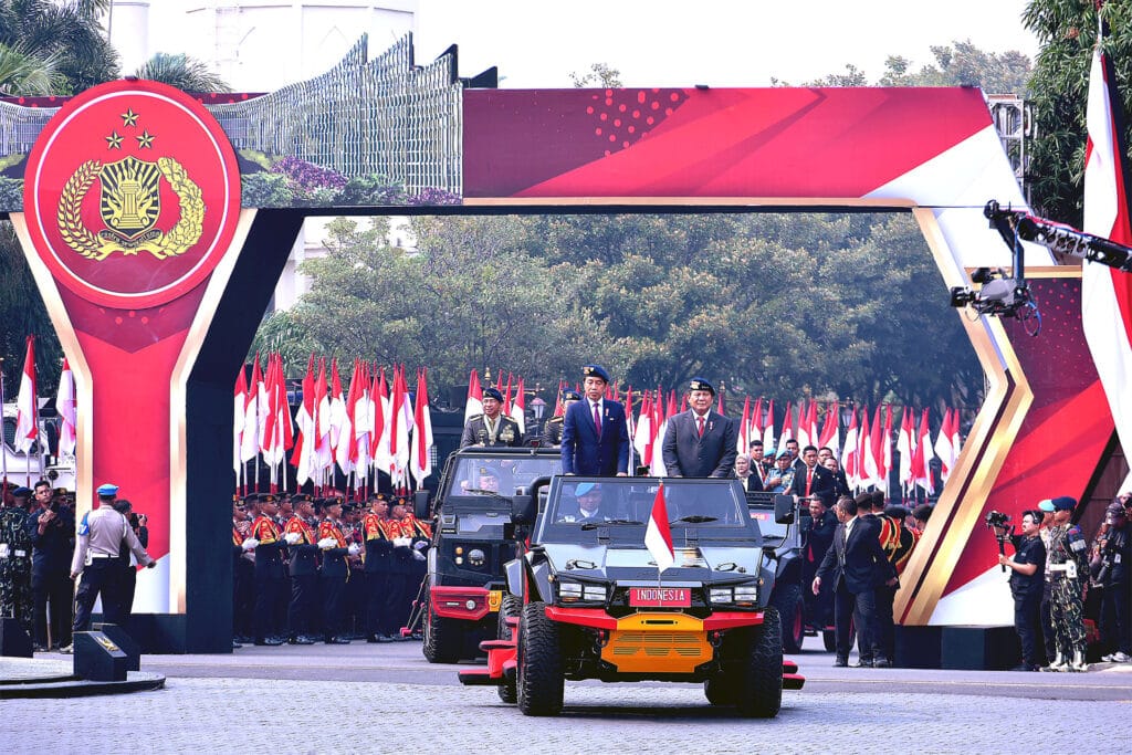 Usai menerima penghormatan dari jajar kehormatan, Presiden menaiki kendaraan taktis Maung menuju ke mimbar kehormatan. Apel diawali dengan mengumandangkan lagu kebangsaan Indonesia Raya. Selanjutnya, Presiden didampingi Kapolri menuju ke mimbar apel dan memperoleh penghormatan kebesaran.