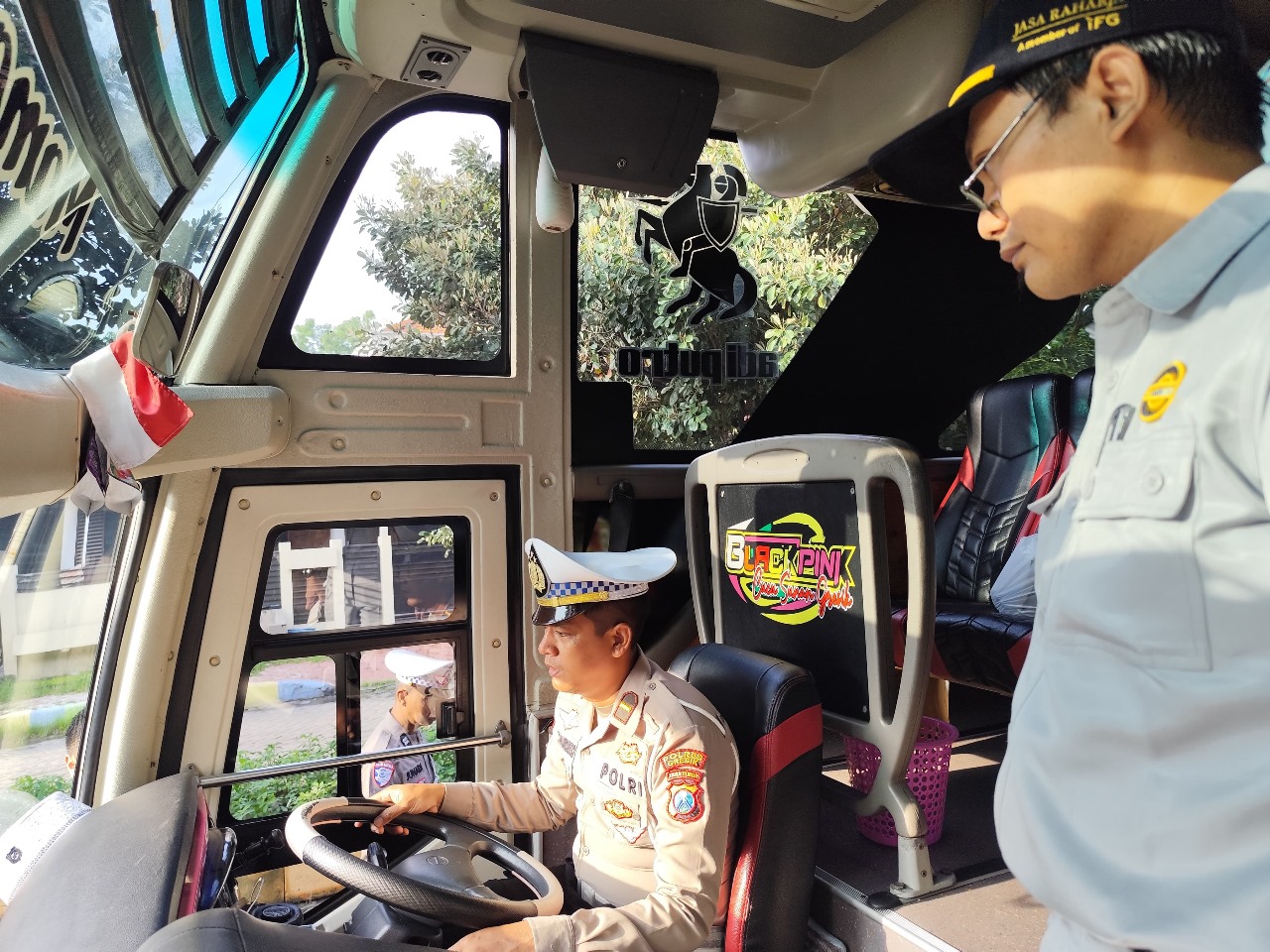 Setelah menyelesaikan ramp check pada bus pariwisata, tim melanjutkan kegiatan serupa di area Parkir Bus Wisata Sunan Giri. Dalam kesempatan tersebut, himbauan keselamatan juga disampaikan kepada para sopir, kernet, dan penumpang, menekankan pentingnya menjaga kondisi fisik pengemudi dan mematuhi aturan lalu lintas.
