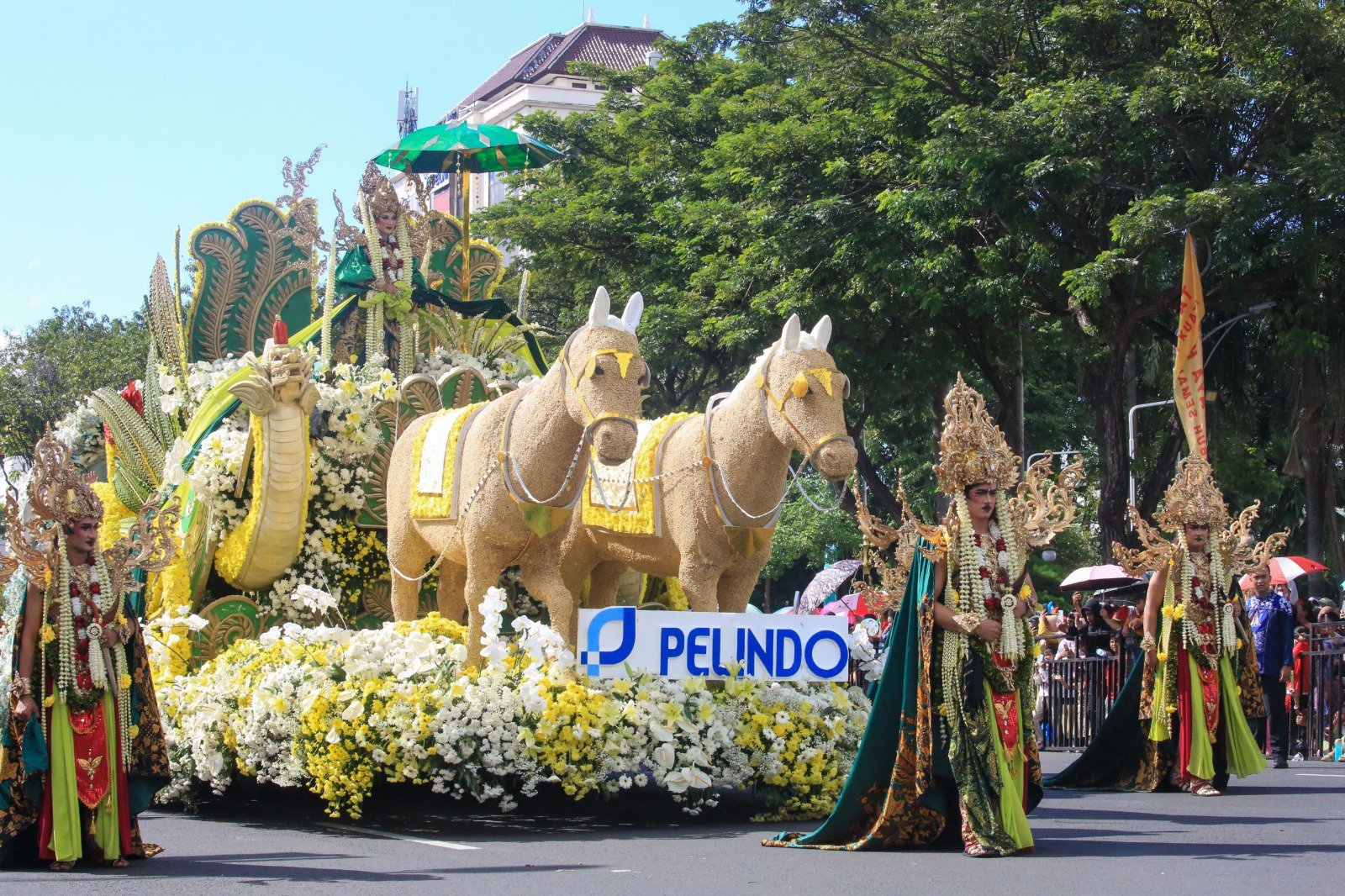 Pelindo hadir dengan mobil hias bertemakan ‘Harmoni Laut dan Budaya’, dengan mengusung sosok ikonik Nyi Roro Kidul, mobil hias Pelindo menyampaikan pesan mendalam tentang pentingnya menjaga laut sebagai bagian dari identitas bangsa. Visual yang memukau dipadukan dengan elemen bunga, tarian budaya, dan musik tradisional berhasil memikat perhatian juri dan penonton sepanjang jalur pawai.